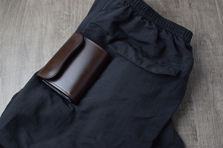 一方のBYRNEは、ヒップポケットから本体の一部が少しだけ出てしまいますが、こちらを除くと思ったより違和感なくヒップポケットへ収納することもできます。