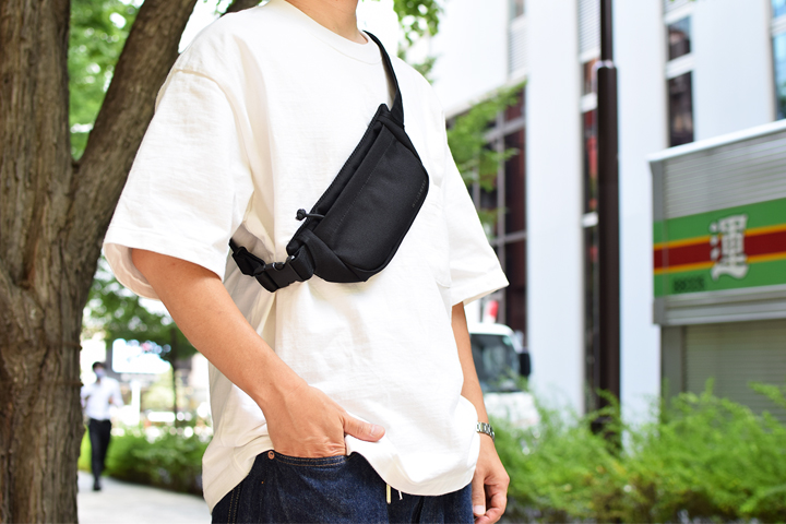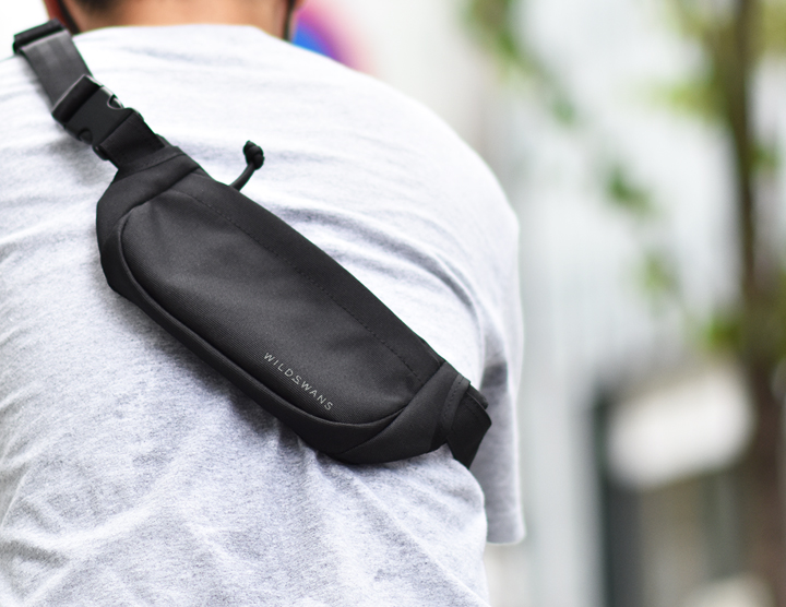 WILDSWANSのバッグコレクションで最軽量クラスのCASSINOは、身に着けていることを忘れてしまう程のウエストバッグに仕上がりました。モデル画像ではショルダーで身に着けていますが、製品名の通り、ウエストに装着して頂くこともできます。