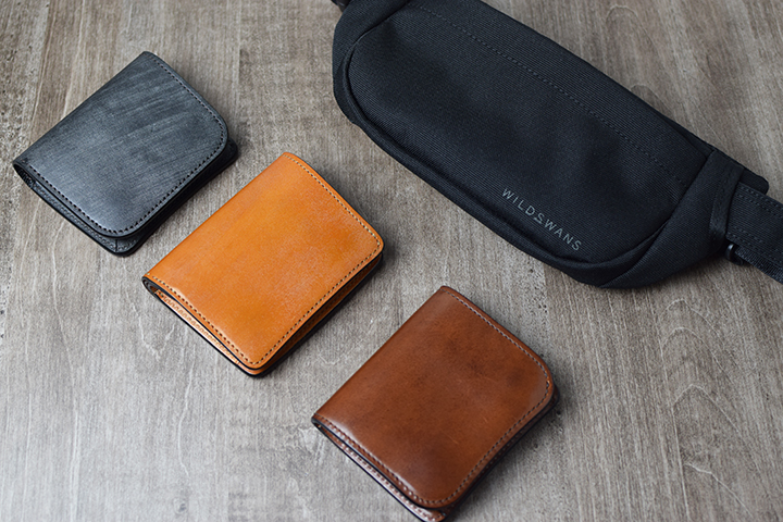 WILDSWANSのアイテムではPALMやkf-003、CASAなどのミニ財布の収納が可能ですが、収納の際は以下のような方法でお願い致します。
