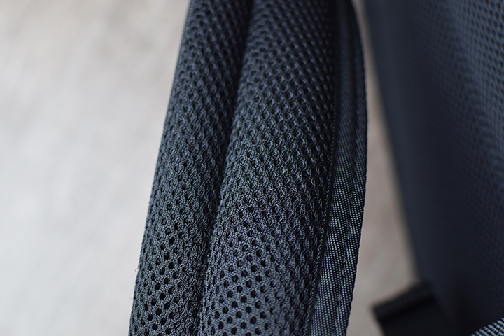 こちらの太いストラップの背面にはWラッセルメッシュを組み合わせることで、快適なフィット感を実現しています。